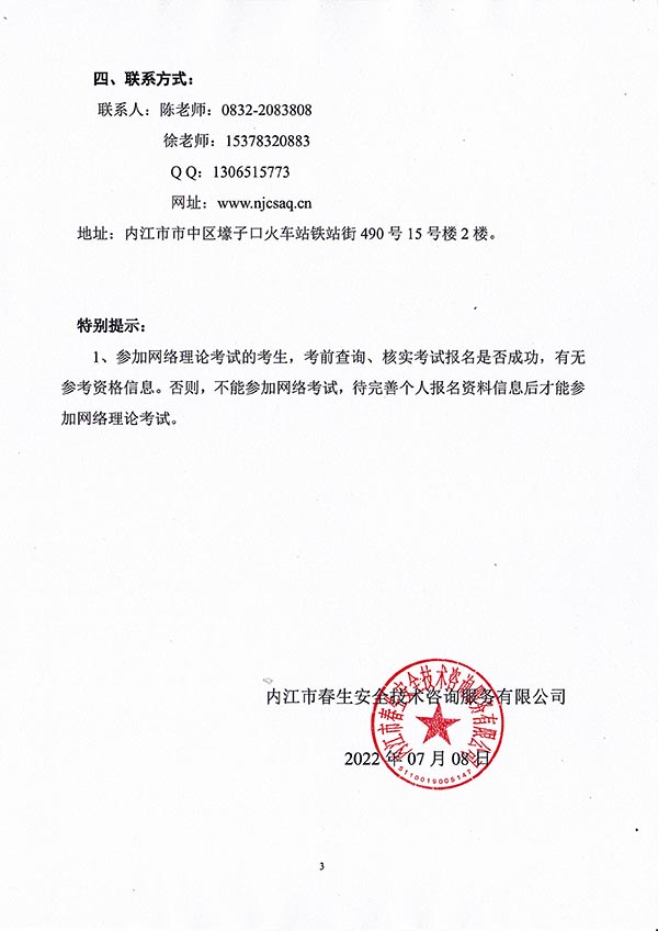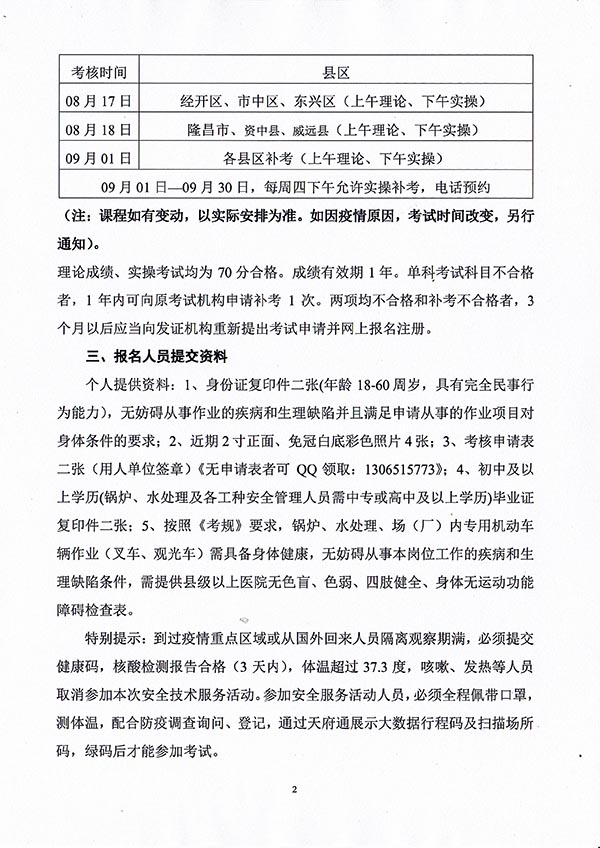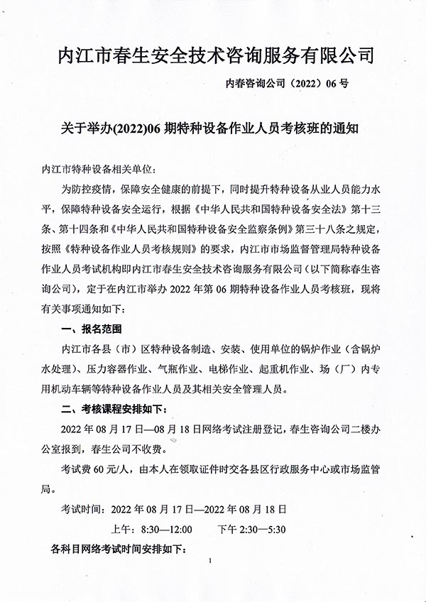 2022年春生公司06期特種設備作業(yè)人員考核時(shí)間安排