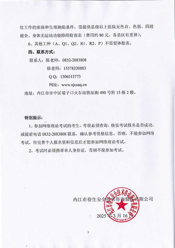 2025年春生公司第3期特種設備作業(yè)人員考核通知